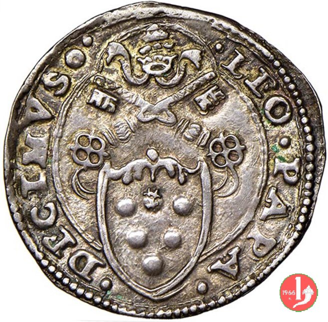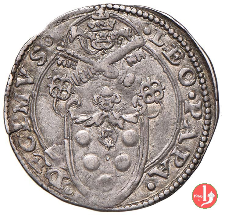 19 D/ •LEO •PAPA •__ •DECIMVS • / grosso fiore sullo stemma - Centine interne R/(da sinistra in basso) •S •PETRVS • •__ •APOSTOLVS • /MA armetta RC - 2 centine lineari - chiavi rivolte all'esterno