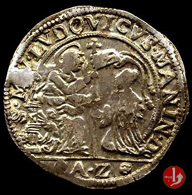 ¤ S • M • V • LVDOVI • MANIN • D • San Marco, seduto su trono a sinistra, benedicente il doge genuflesso, al quale porge il vessillo; all'esergo la sigla del massaro.