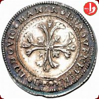 Leone in soldo sullo scudo ornato di fogliame, in un cerchio di perline.1