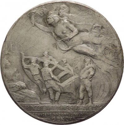| Medaglia uniface coniata, realizzata nel 1910 a ricordo del Convegno Nazionale Goliardico di Genova. | ||||