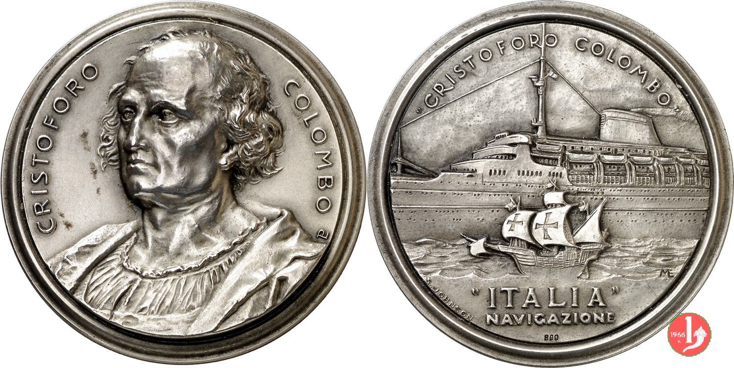 Medaglia coniata senza data, realizzata nel 1954 per ricordare l'entrata in servizio del transatlantico Colombo, costruito dai Cantieri Ansaldo di Genova per la Italia - Società di navigazione. La nave fu varata nel 1952 ed era gemella con la Andrea Doria.