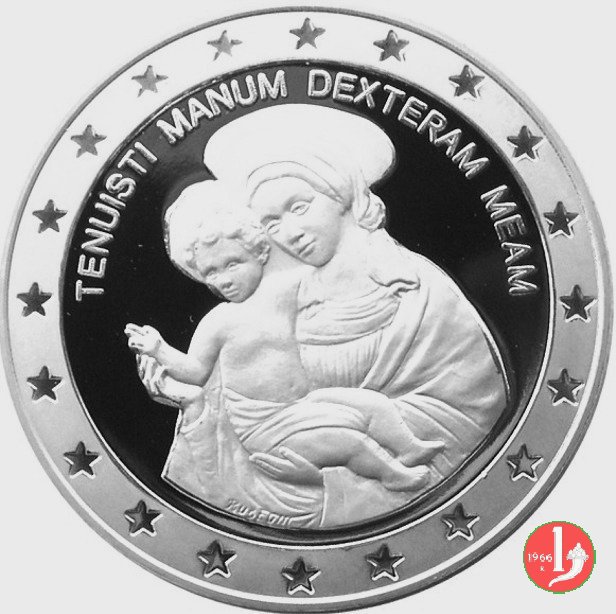 Medaglia coniata, realizzata nel 2010, con fondi specchio, per ricordare il quattrocentesimo anniversario dell'apparizione della B. V. dell'Orto in Chiavari.