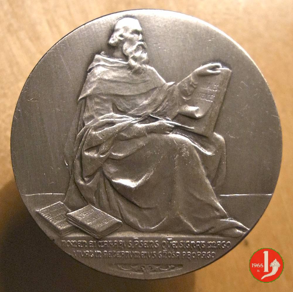 Medaglia coniata, a ricordo del 50° Anniversario della Società Ligure di Storia Patria. La medaglia ricorda anche la stesura degli Annali di Caffaro di Rustico da Caschifellone detto il Caffaro, Crociato e diplomatico che redasse gli Annali con la Storia della Città di Genova. | |||