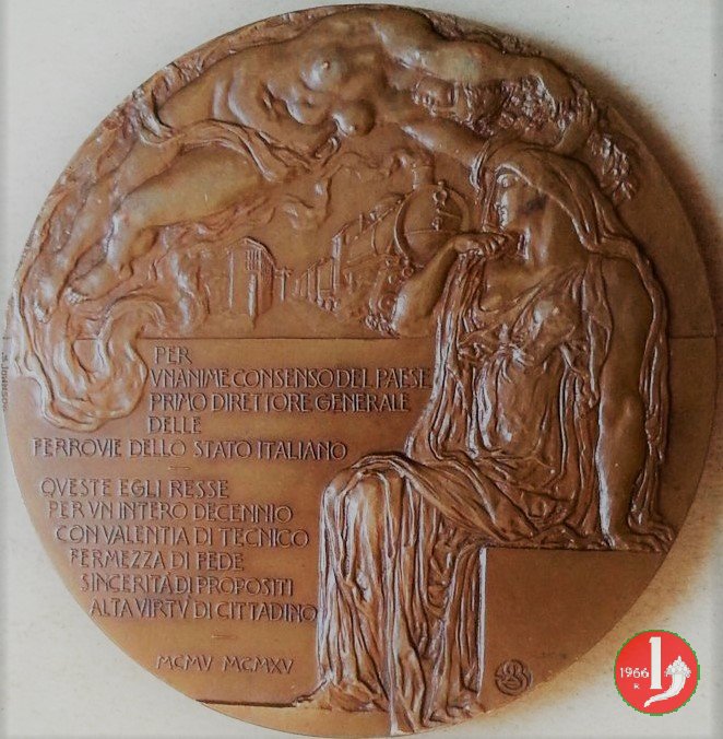| Medaglia coniata, realizzata nel 1915 in omaggio a Riccardo Bianchi (1854-1936), direttore generale delle Ferrovie Italiane. | ||||||