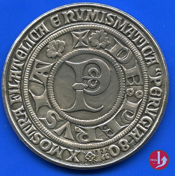 Medaglia coniata, realizzata nel 1980 a ricordo della decima Mostra Filatelica e Numismatica di Perugia.