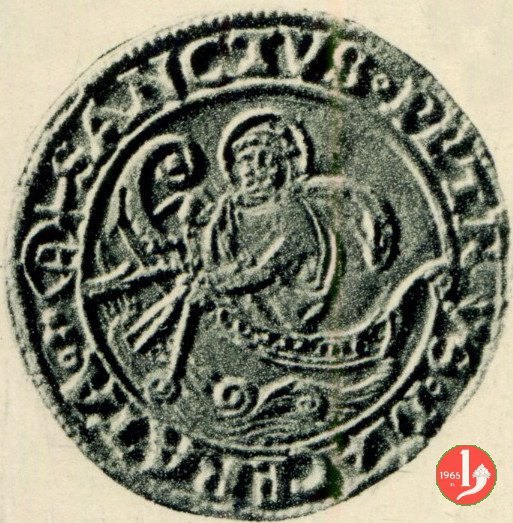 °ADRIANVS°__°VI°PON°MAX° / Stemma semiovale sormontato da chiavi dec. e da tiara (dall'alto poco a sinistra) SANCTVS°PRTR VS°MACERATA°trepuntiSegno Antonio Migliori / S. Pietro nimbato seduto nella barca verso sinistra che tira le reti