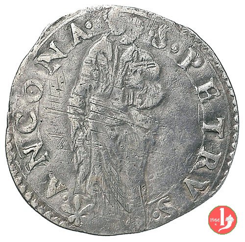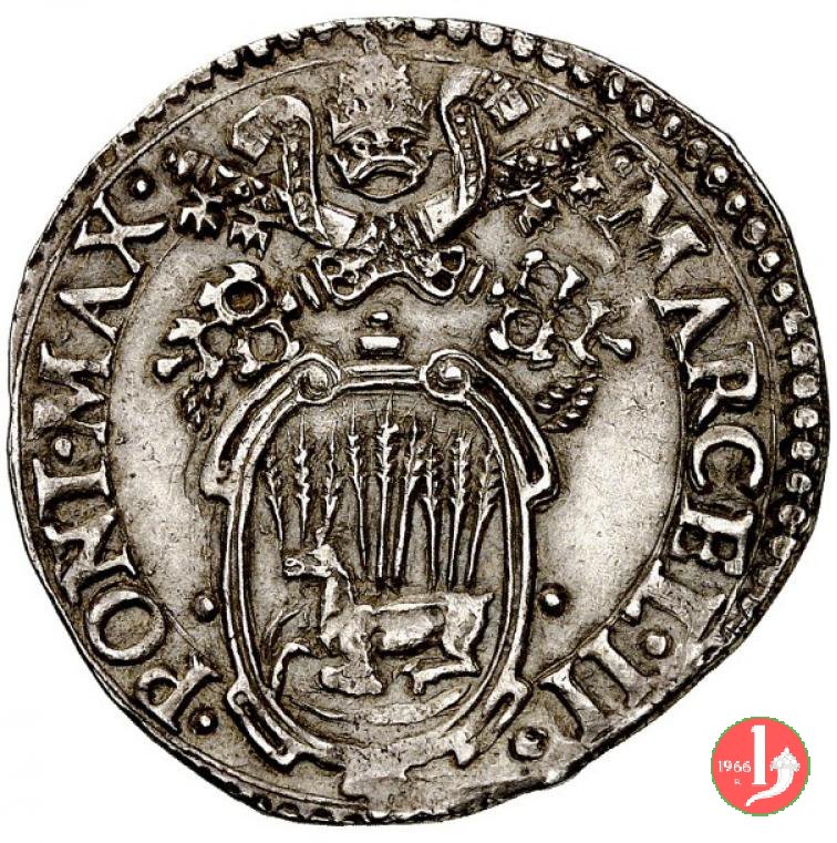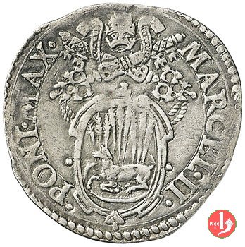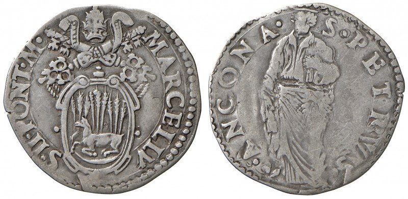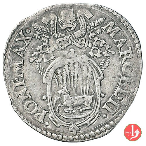 2 D/MARCEL •II •__ •PONT •MAX • /Stemma con 10 spighe unite 3-3-4 ; ai lati dello stemma •_ • R/ •S •PETRVSS •__Segno Mazzeo Mazzei ANCONA •