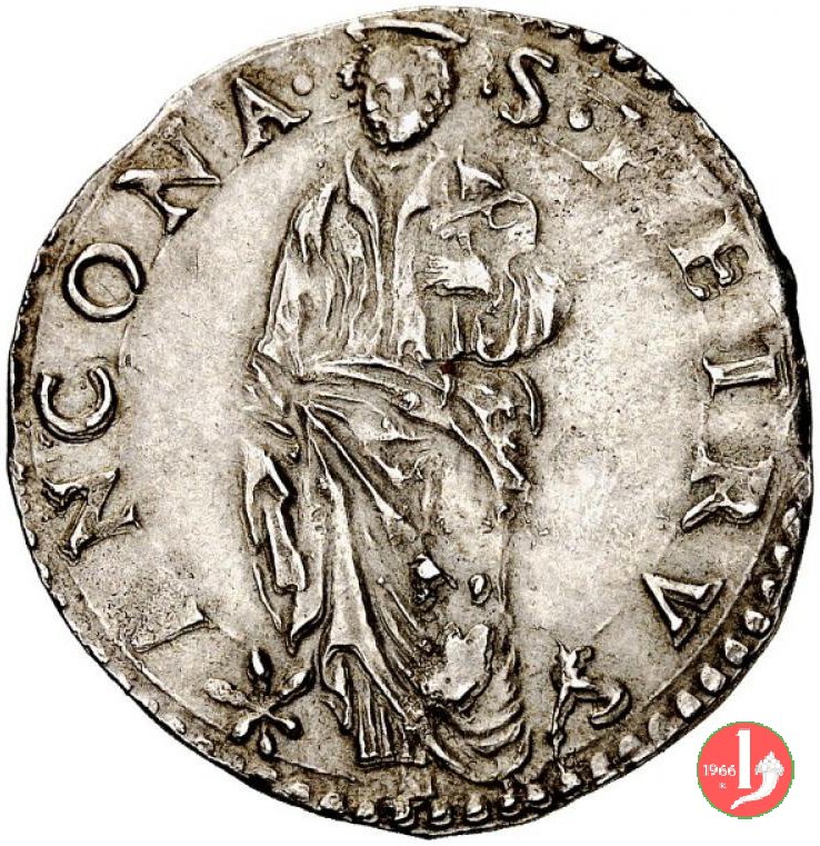 .MARCEL •II •__ •PONNT •MAX • /Stemma ovale con 9 spighe in mazzi di 3, sormontato da chiavi dec. e tiara S •PETRVS •__Segno Mazzeo Mazzei •ANCONA • /S.Pietro nimbato, in piedi di fronte, testa volta a sinistra, chiavi nella destra pendente e libro nella sinistra