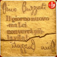Placchetta quadrata coniata, realizzata a ricordo di Dino Buzzati (1906-1972) scrittore, giornalista e poeta. | |||