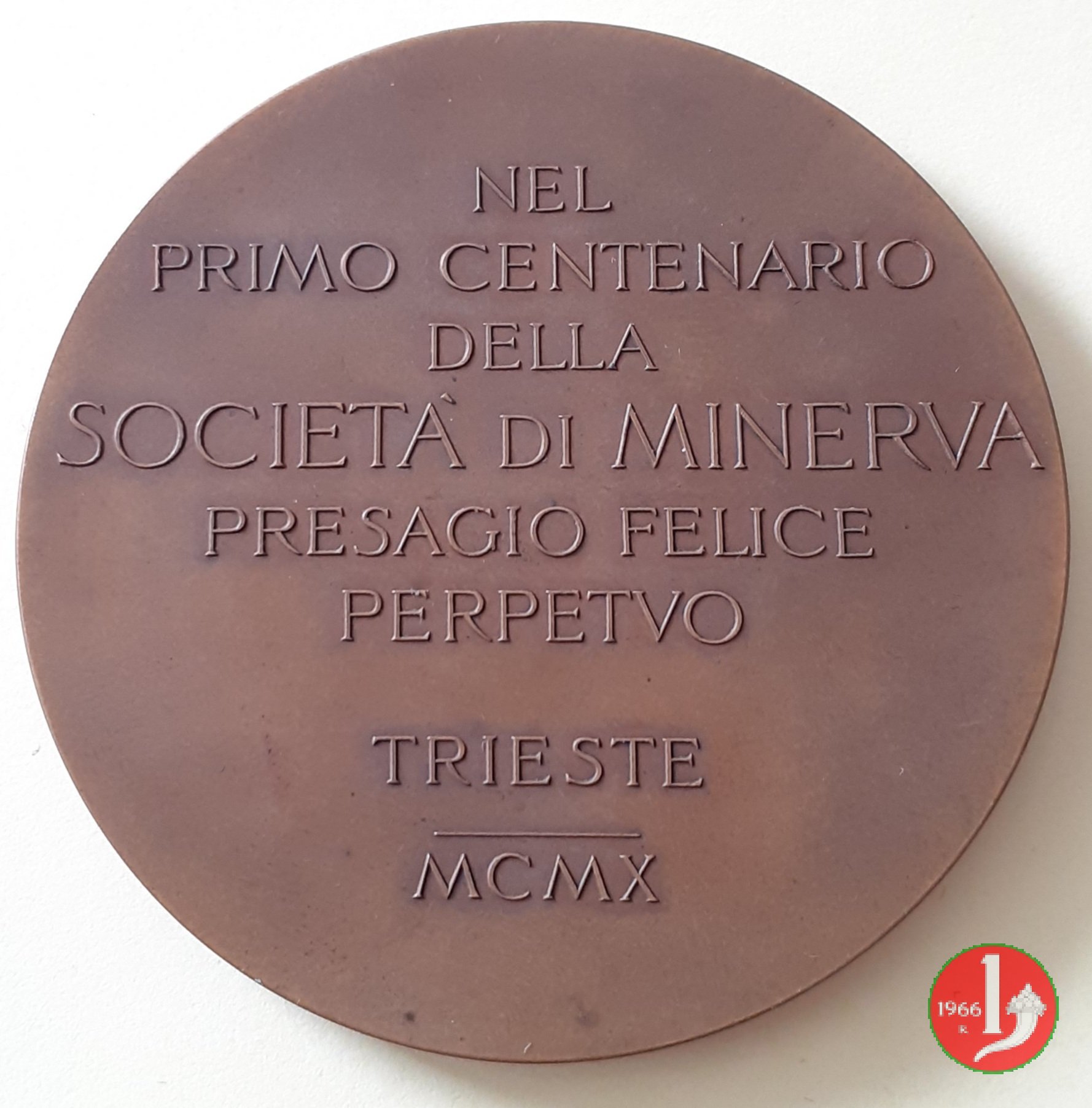 | Medaglia coniata, realizzata nel 1910 dallo Stabilimento Stefano Johnson di Milano, per ricordare il primo centenario di fondazione della Società di Minerva in Trieste. | ||||||