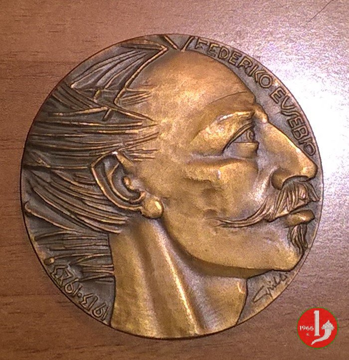 Medaglia coniata, realizzata nel 1983 dallo Stabilimento Stefano Johnson di Milano, a ricordo del 70° anniversario della morte di Federico Eusebio, fondatore del Museo Storico e Archeologico di Albere-Alba e fondatore del bimestrale "Alba Pompeiana".