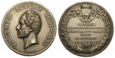 | Medaglia coniata, realizzata nel 1935 dagli Stabilimenti Artistici Fiorentini, per ricordare il centenario della morte di Vincenzo Bellini. | ||||||