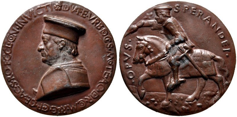 Medaglia fusa, realizzata nel 1482 circa, per ricordare Federico da Montefeltro (1422-1482), Conte di Montefeltro, di Urbino e di Castel Durante.