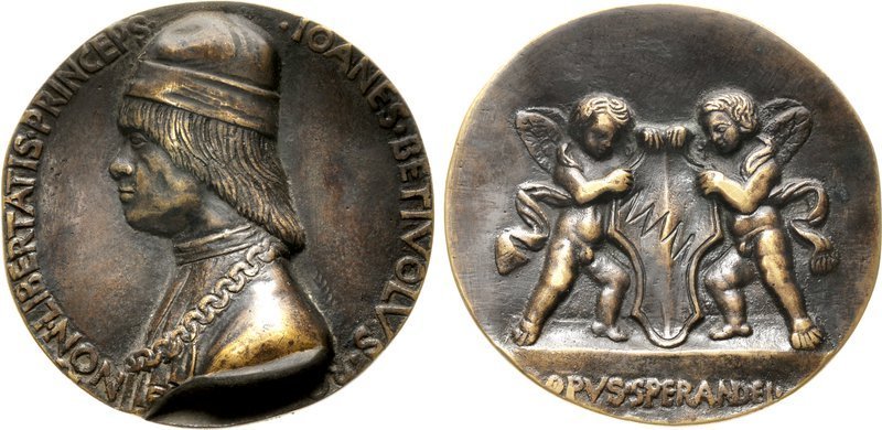 Medaglia fusa, probabilmente eseguita nel 1462 per celebrare la proclamazione di Giovanni II da Bentivoglio a Princeps del Senato bolognese.