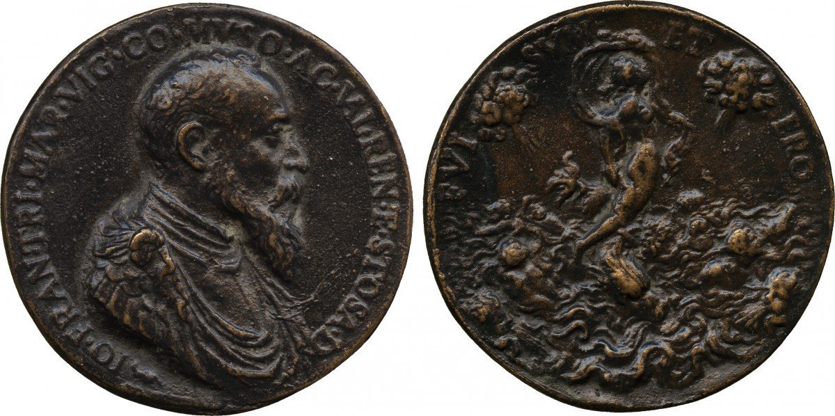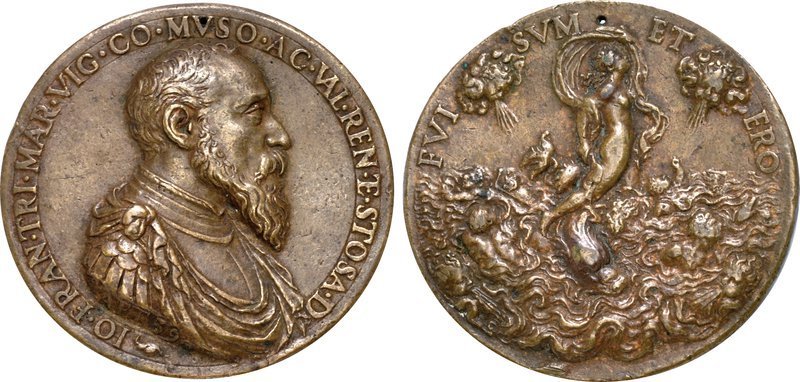 | Medaglia fusa, realizzata nel 1570 a ricordo di Gianfrancesco Trivulzio (1504-1573) Marchese di Vigevano e conte di Mesocco. | ||||||