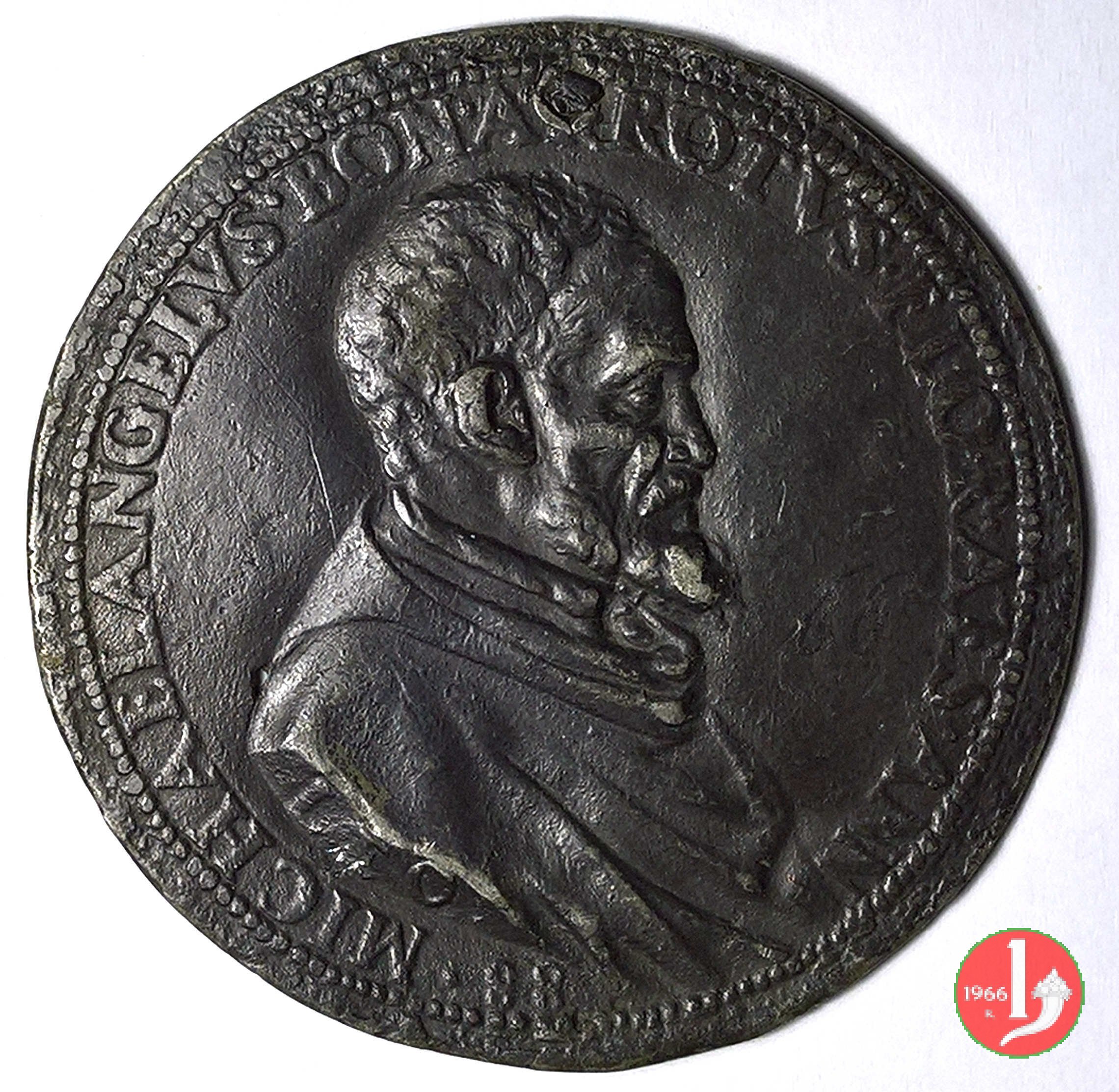 Medaglia fusa, realizzata nel 1562 in omaggio a Michelangelo Buonarroti (1475-1564) scultore, pittore e architetto.