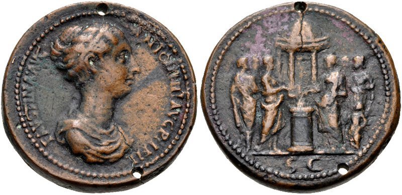 Medaglia di restituzione fusa, realizzata per celebrare Faustina II o minore (147-175), moglie dell'Imperatore Marco Aurelio, figlia di Antonino Pio e madre di Commodo.
