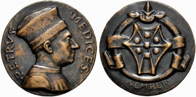| Medaglia fusa, realizzata per ricordare Don Pietro de 'Medici (1554-1604) figlio minore del Granduca di Toscana Cosimo I de' Medici e di Eleonora di Toledo. | |||||||||||
