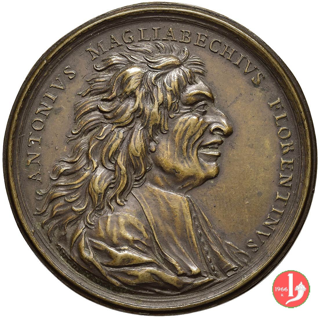 | Medaglia coniata, emessa nel 1714 per ricordare Antonio Magliabechi (1633-1714), erudito e bibliotecario di Cosimo III. | ||||||