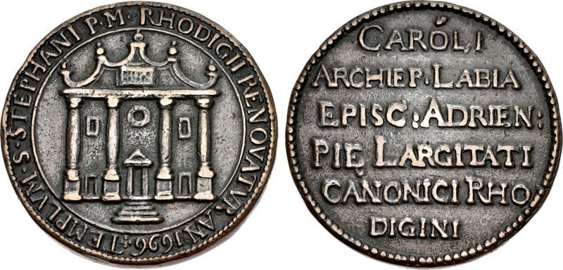 Medaglia fusa, realizzata nel 1696 per ricordare l'inizio lavori per la ricostruzione della Cattedrale di Santo Stefano Papa e Martire in Rovigo.