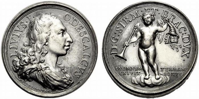 Medaglia coniata, realizzata nel 1700 circa per Livio I Odescalchi, duca di Bracciano e di Sirmio (1658-1713).