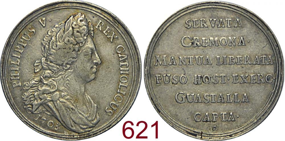 | Medaglia coniata nel 1703 per ricordare la difesa di Cremona, la conquista di Mantova e la vittoria nella battaglia di Guastalla. | ||||