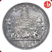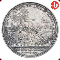 Medaglia coniata realizzata nel 1709 a ricordo della conquista della città di Lille dalle forze congiunte del principe Eugenio di Savoia e di John Churchill, duca di Malbourough. Attribuita al Lauffer. | |||||
