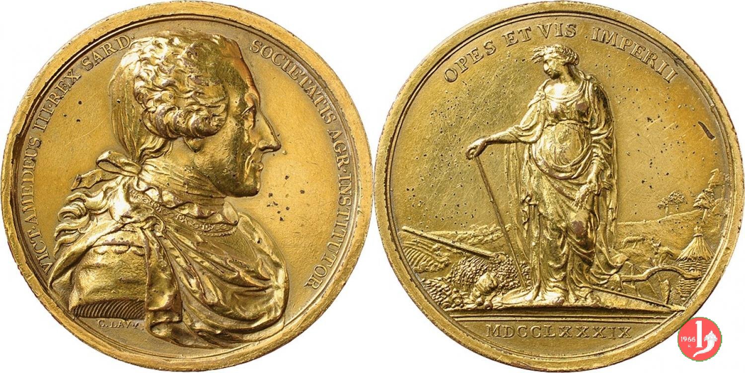 | Medaglia coniata, emessa nel 1789, per ricordare l'istituzione della Società Agraria. | |||||||