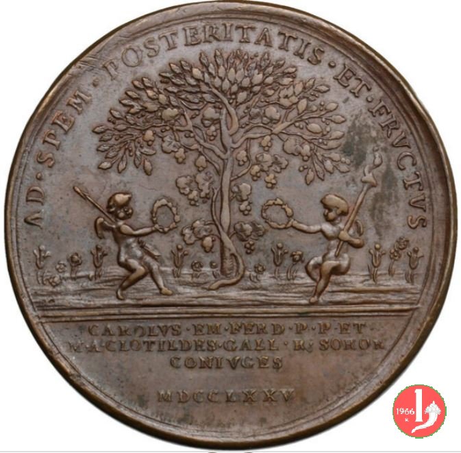 Medaglia coniata, realizzata nel 1755 per ricordare le nozze di Carlo Emanuele Ferdinando e Maria Clotilde.