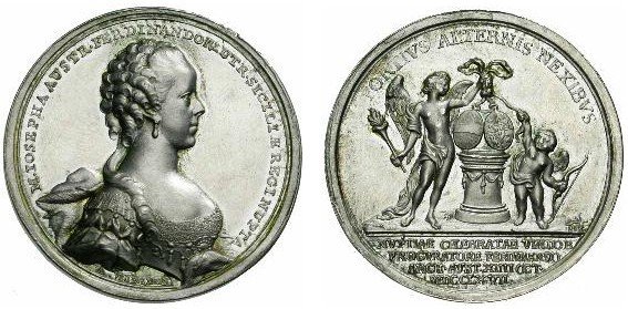 Medaglia coniata, emessa per ricordare la promessa di matrimonio di Maria Giuseppa Arciduchessa d'Austria e Ferdinando IV di Borbone.