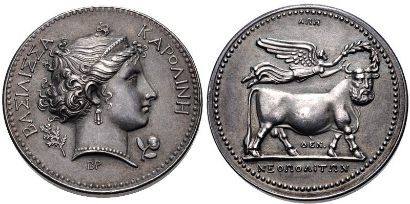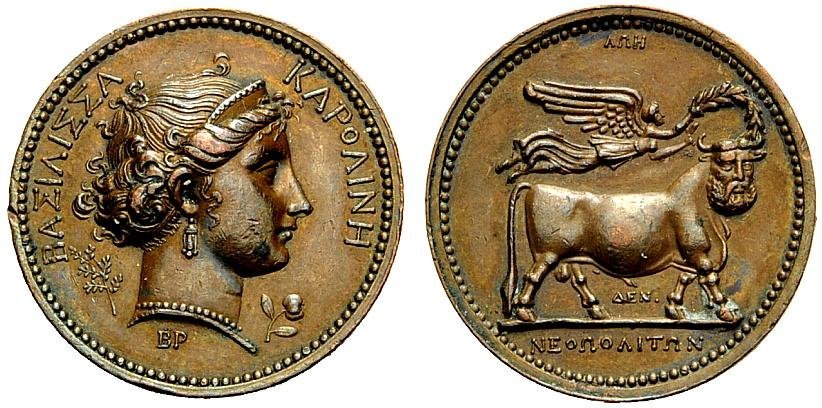 Medaglia coniata, realizzata nel 1808 in onore della regina Carolina Annunziata Bonaparte, moglie di Gioacchino Murat.