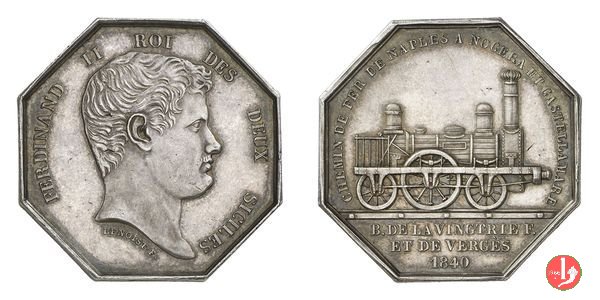 Medaglia ottagonale coniata, emessa per ricordare l'inaugurazione della ferrovia Napoli-Portici. Primo tratto ferroviario Italiano.