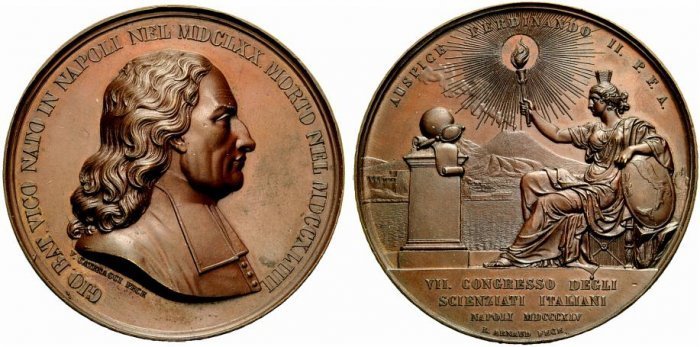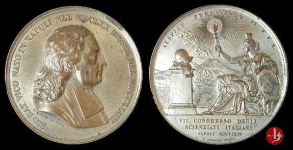 | Medaglia coniata, emessa nel 1845 per ricordare il settimo Congresso degli Scienziati Italiani a Napoli. | ||||||||