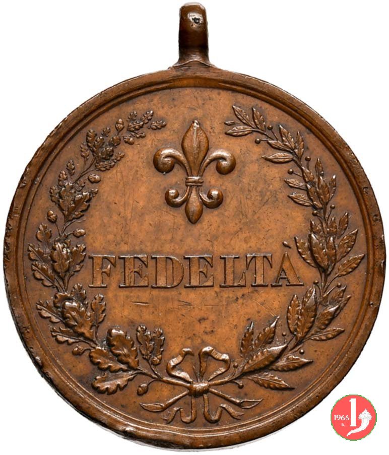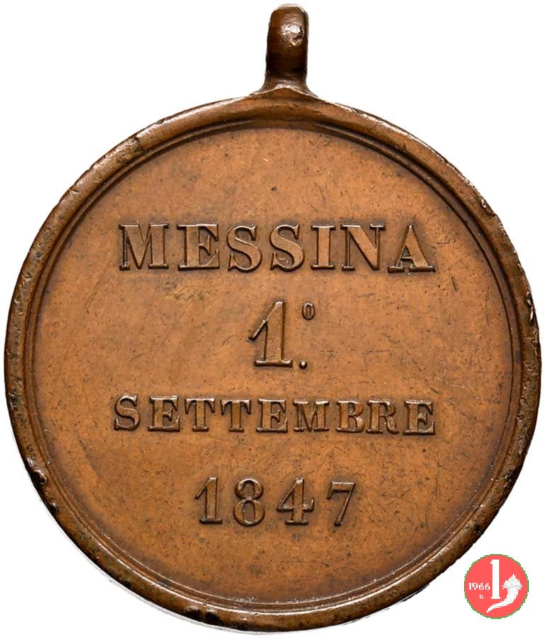 entro rami di quercia e d'alloro legati in basso da nastro: Giglio Borbonico = FEDELTA' nel campo: MESSINA = 1° = SETTEMBRE = 1847