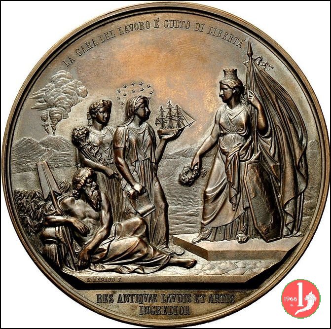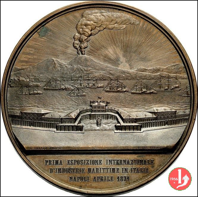 Medaglia coniata, emessa nel 1871, per ricordare la prima Esposizione Internazionale delle Industrie Marittime a Napoli.