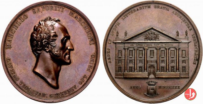 | Medaglia coniata, fatta coniare nel 1830 dalla Città di Vigevano in omaggio a Marcello Saporiti. | |||||||