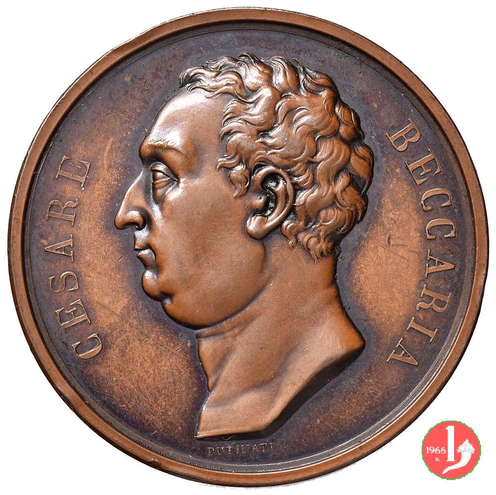 Medaglia coniata, realizzata nel 1820 per la Serie Uomini Illustri Italiani, a ricordo di cesare Beccaria (1738-1794) Giurista, filosofo, economista e letterato.
