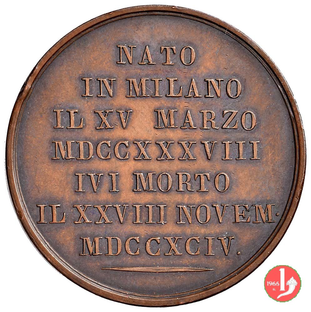 nel campo: NATO = IN MILANO = IL XII GIUGNO = MDCCXL. = IVI MORTO = IL XXVIII NOVEM. = MDCCXCIV.