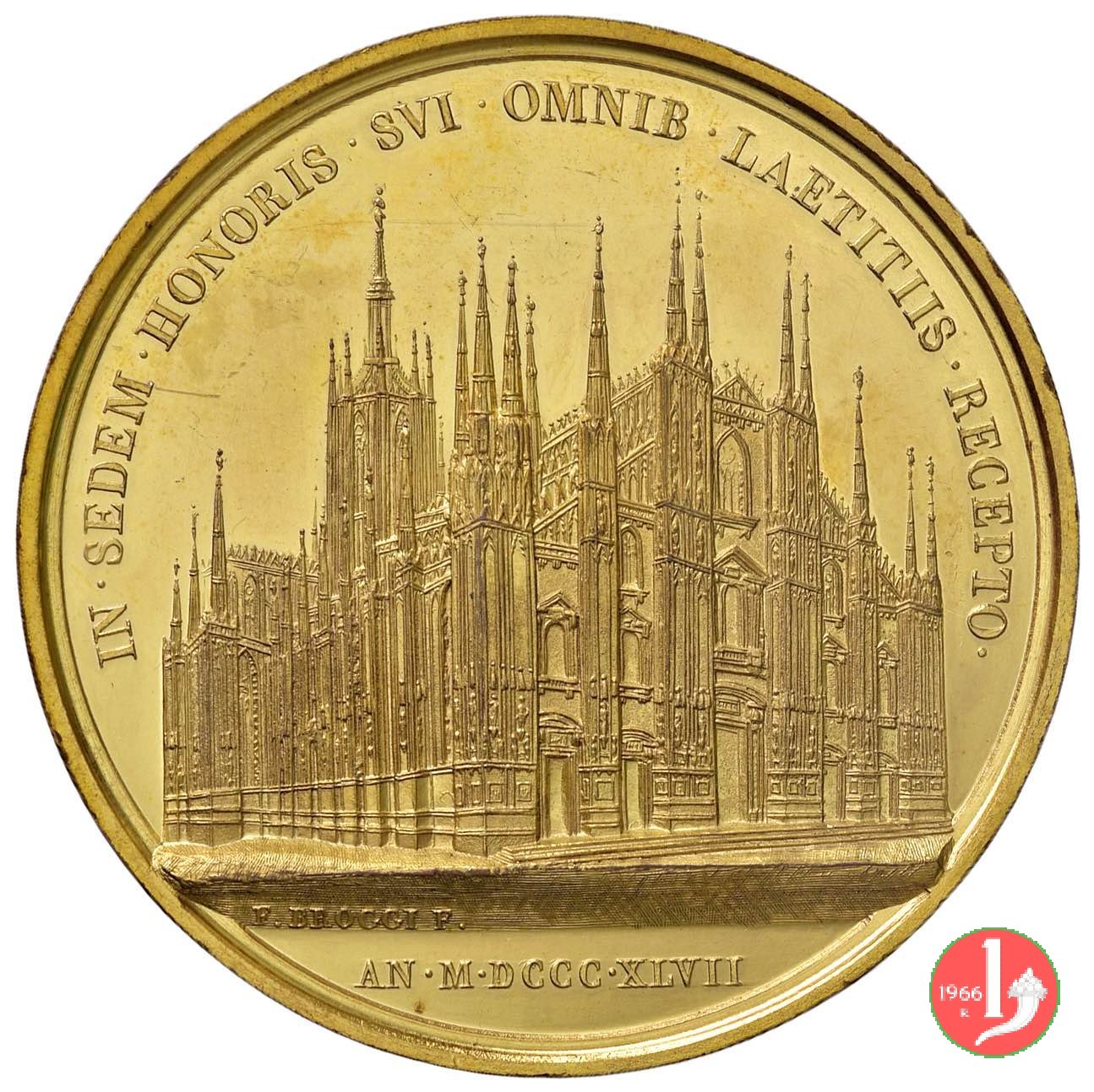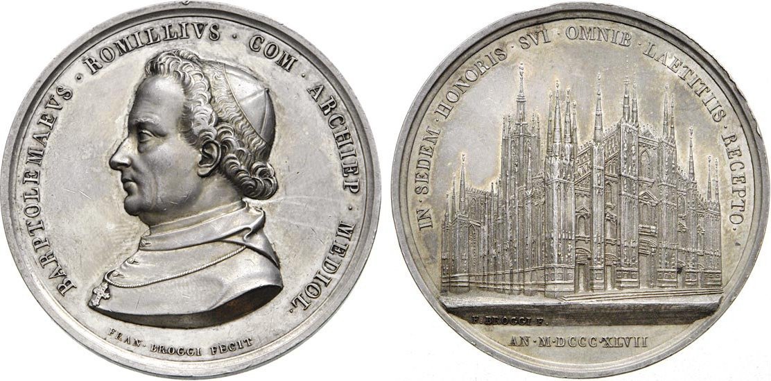 Medaglia coniata, emessa il 14-06-1847 a ricordo della nomina ad Arcivescovo di Milano di Carlo Bartolomeo Romilli (1794-1859).
