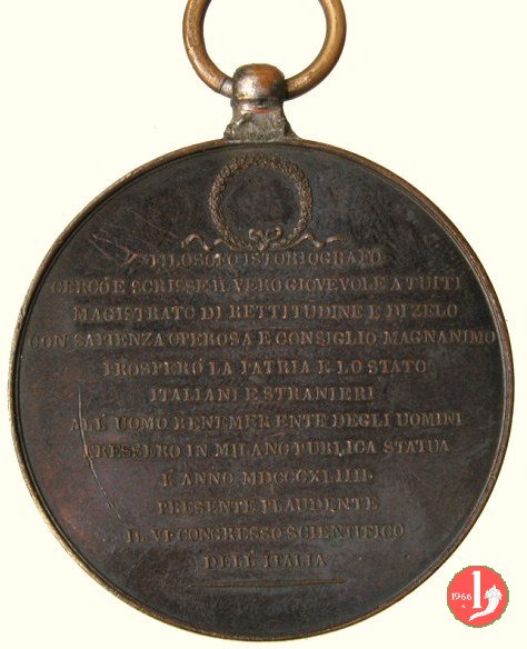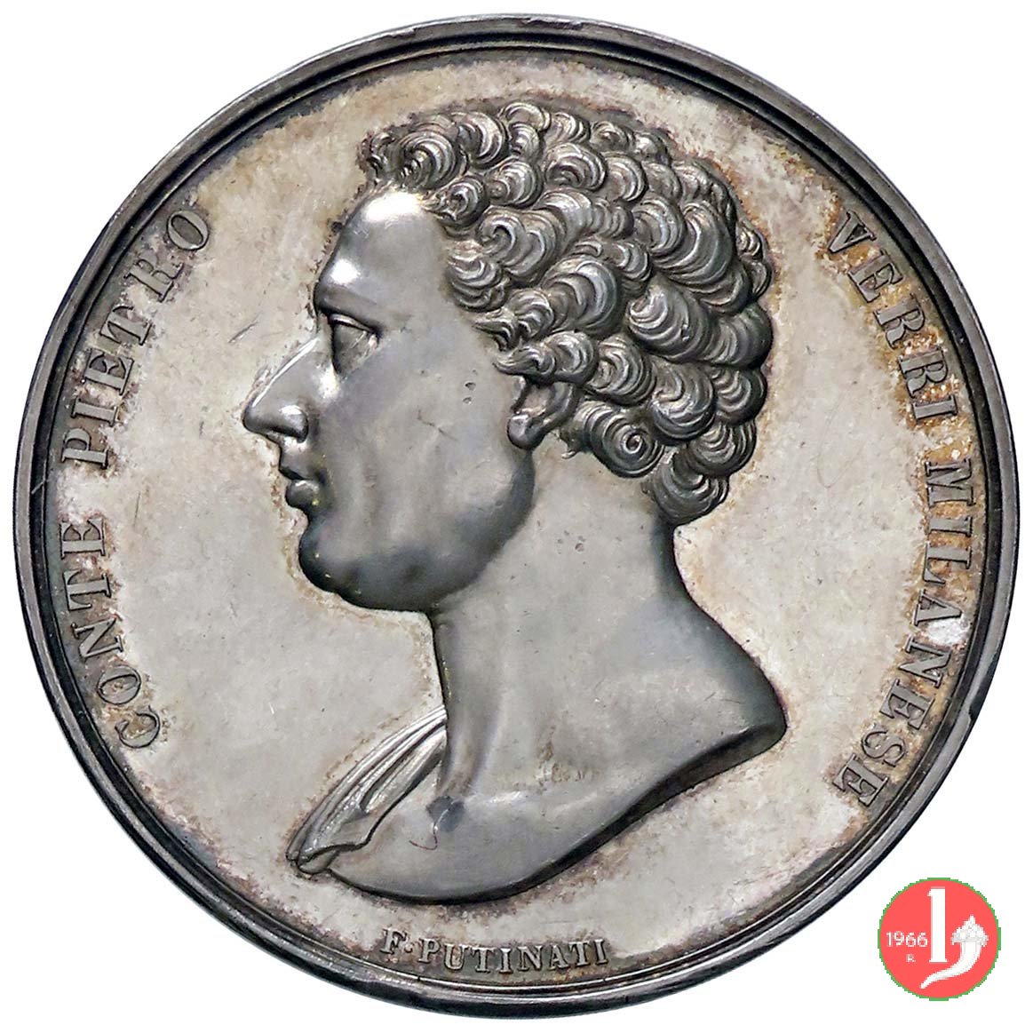 | Medaglia coniata, realizzata nel 1844, per ricordare il quarto congresso degli scienziati e l'inaugurazione del monumento a Pietro Verri (filosofo, economista, storico e scrittore)opera di Innocenzo Fraccaroli, nel Cortile del Palazzo di Brera a Milano. | |||||||