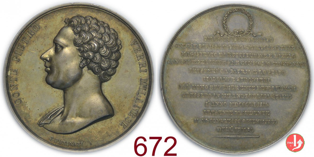 | Pietro Verri - VI Riunione Scienziati Italiani 1844 -T367 (Medaglia) | |||||||