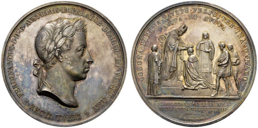 | Medaglia coniata, emessa il 09-10-1838 per celebrare e ricordare l'incoronazione di Ferdinando I. | |||||||