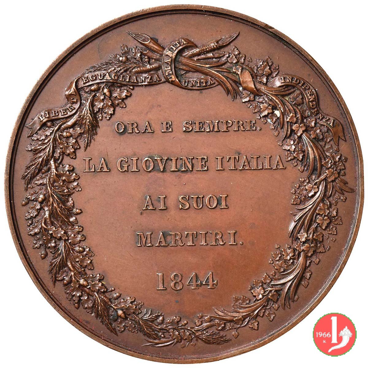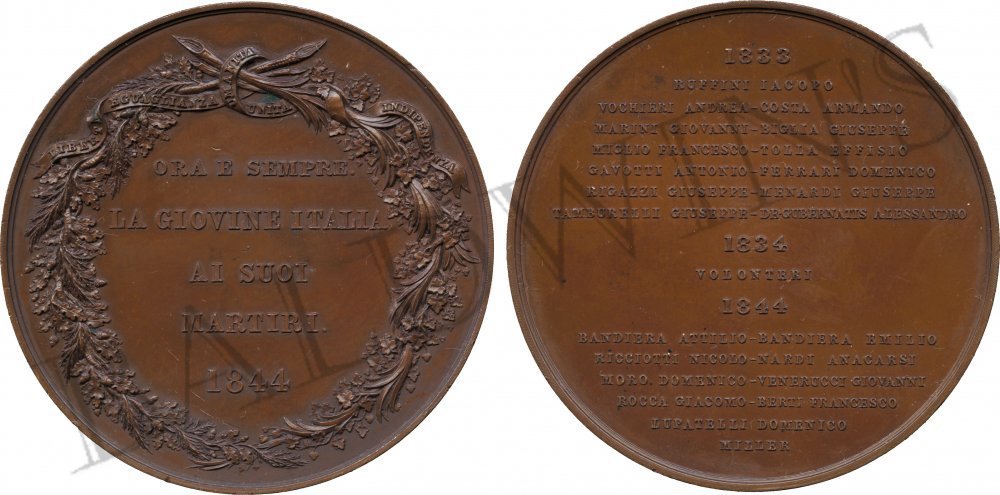 nel campo: ORA E SEMPRE = LA GIOVINE ITALIA = AI SUOI = MARTIRI. = 1844