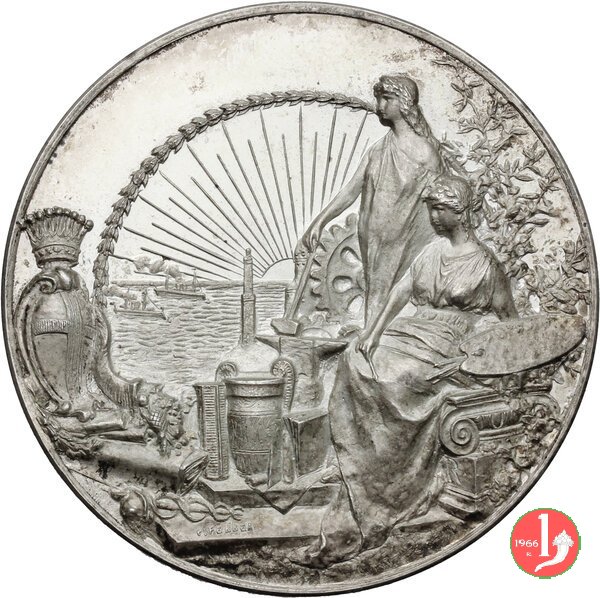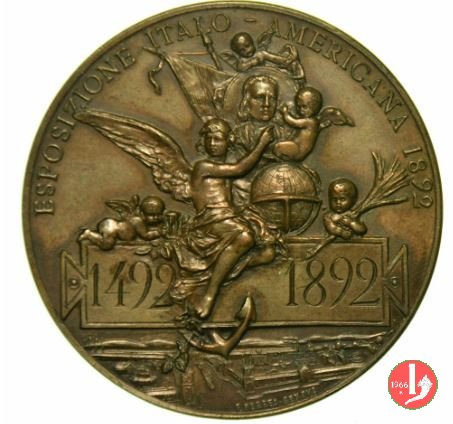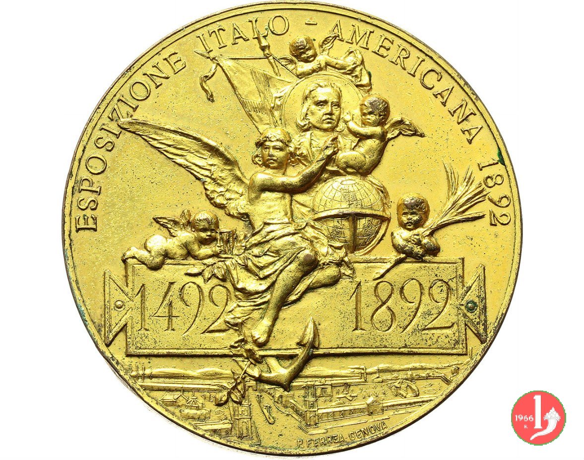 | Medaglia coniata, realizzata nel 1892 per ricordare l'Esposizione Italo-Americana in Genova nel 400° Anniversario della Scoperta dell'America. | ||||||