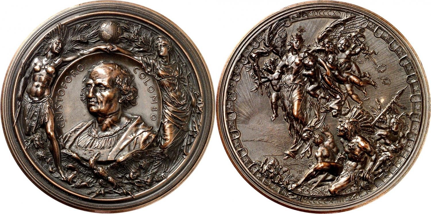 | Medaglia realizzata nel 1892 dallo Stabilimento Stefano Johnson di Milano per ricordare il quarto centenario della scoperta dell'America. | |||||||