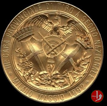 Medaglia coniata, realizzata nel 1892 dallo Stabilimento Stefano Johnson di Milano per la Croce Rossa Italiana e a ricordo della terza gara di Tiro a segno Nazionale in Milano.