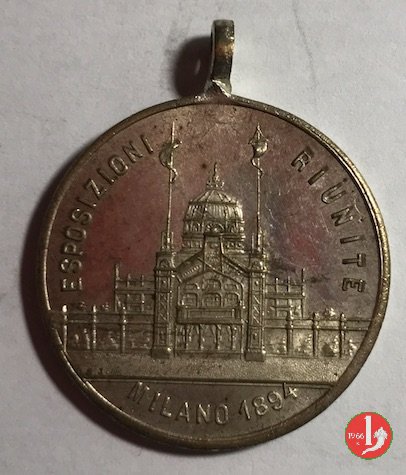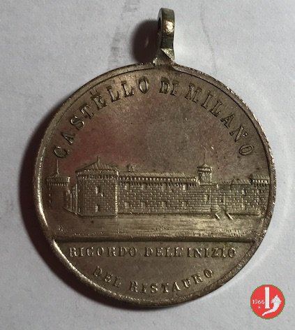 | Medaglia coniata, realizzata nel 1894 dallo Stabilimento Stefano Johnson di Milano, per ricordare l'inizio dei lavori di restauro del Castello Sforzesco e le Esposizioni Riunite di Milano. | ||||