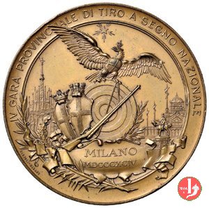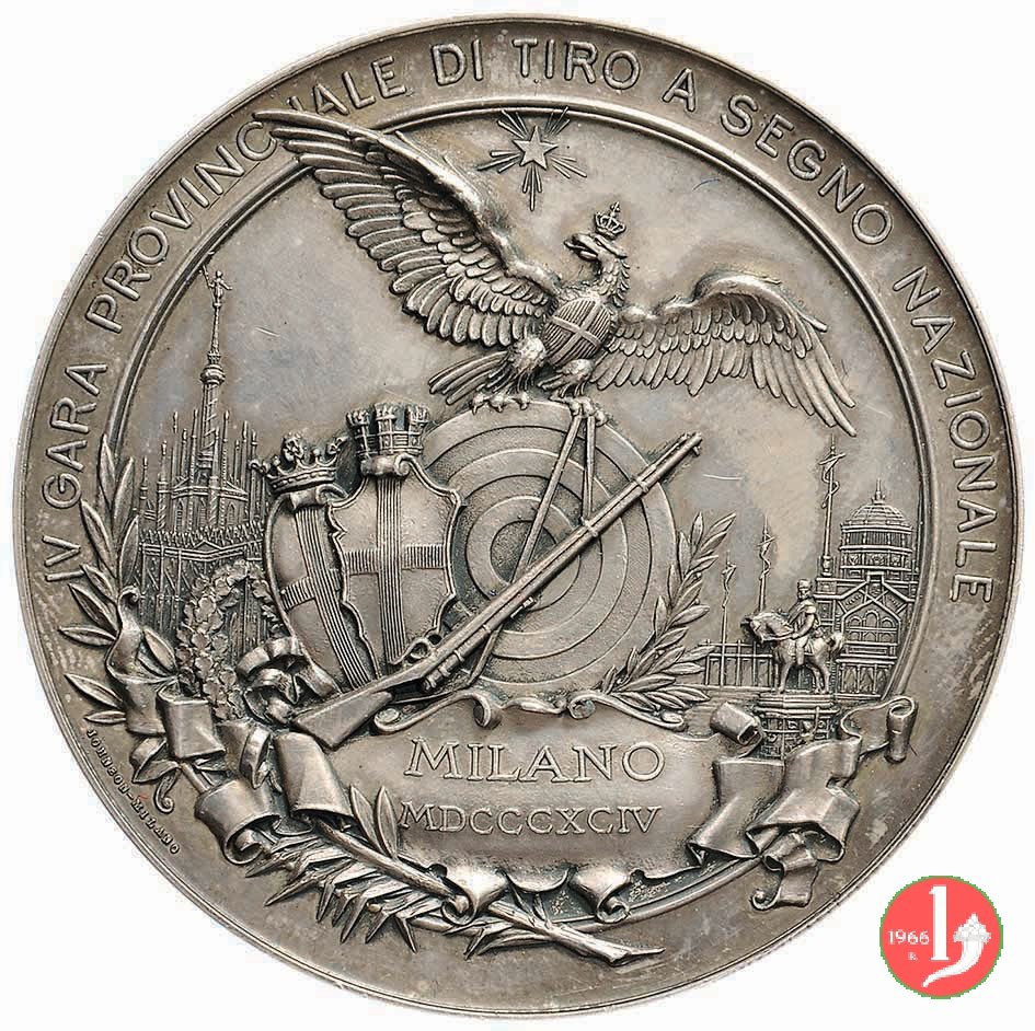 in basso, entro targa su rami di palma: MILANO = MDCCCXCIV