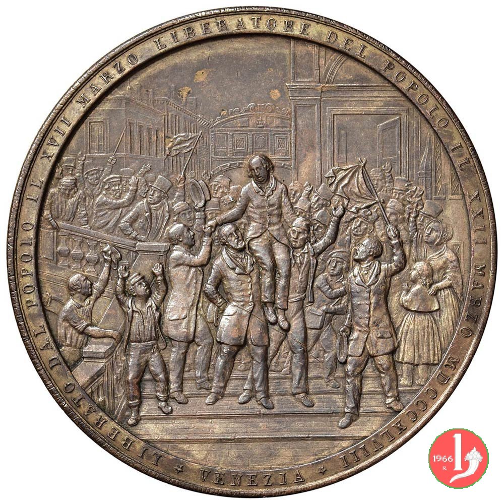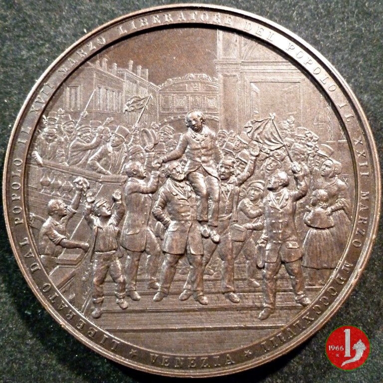 | Medaglia coniata, emessa il 22-03-1848, per ricordare la liberazione dalla prigionia del Patriota Veneziano Daniele Manin. | ||||||