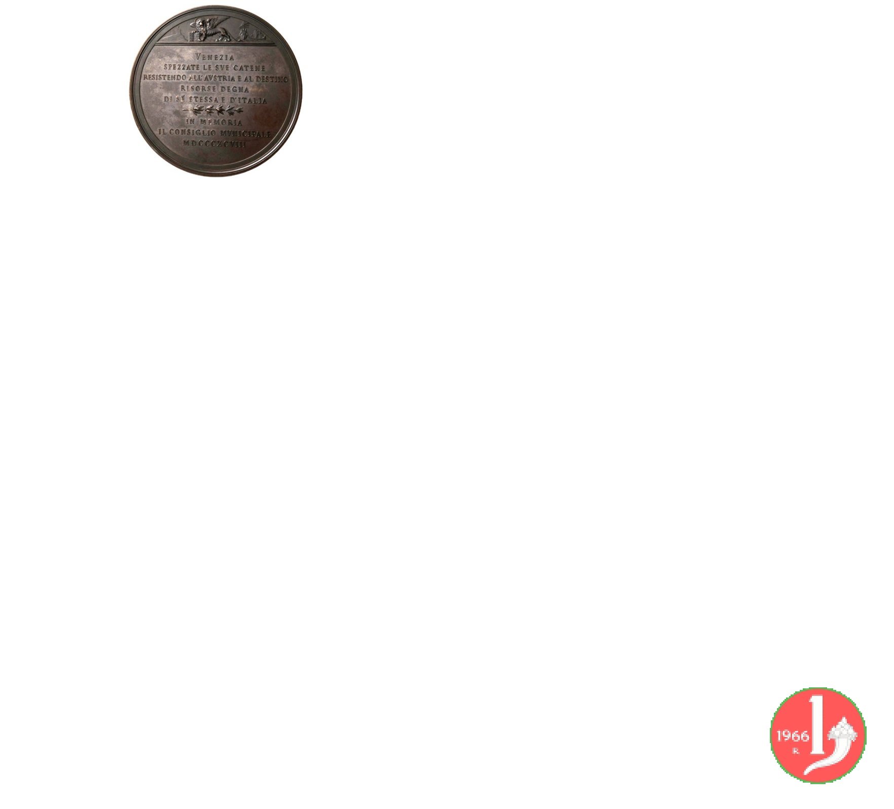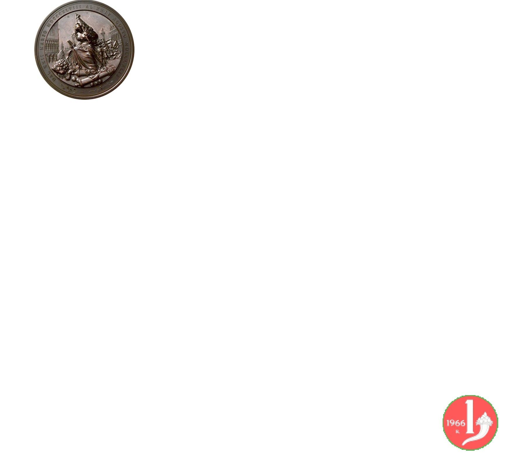 | Medaglia di massimo modulo coniata, realizzata nel 1898, dallo Stabilimento Stefano Johnson di Milano per il Comune di Venezia, a ricordo del cinquantesimo anniversario dei moti del 1848 che videro nascere il Governo provvisorio. | |||||||
